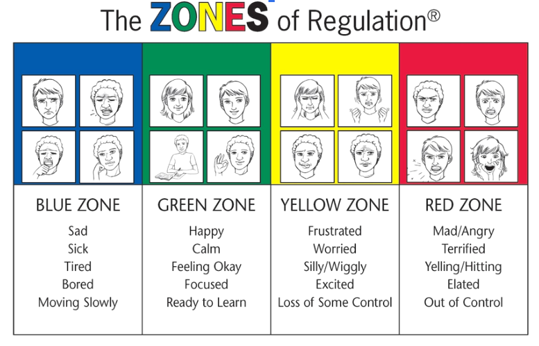 The children explore these zones and learn to be able to identify which zone they are in. There are also visuals in every room classroom which are used to support childrens understanding. Sometimes children can’t or don’t want to name the emotion but they can identify which zone they are in.