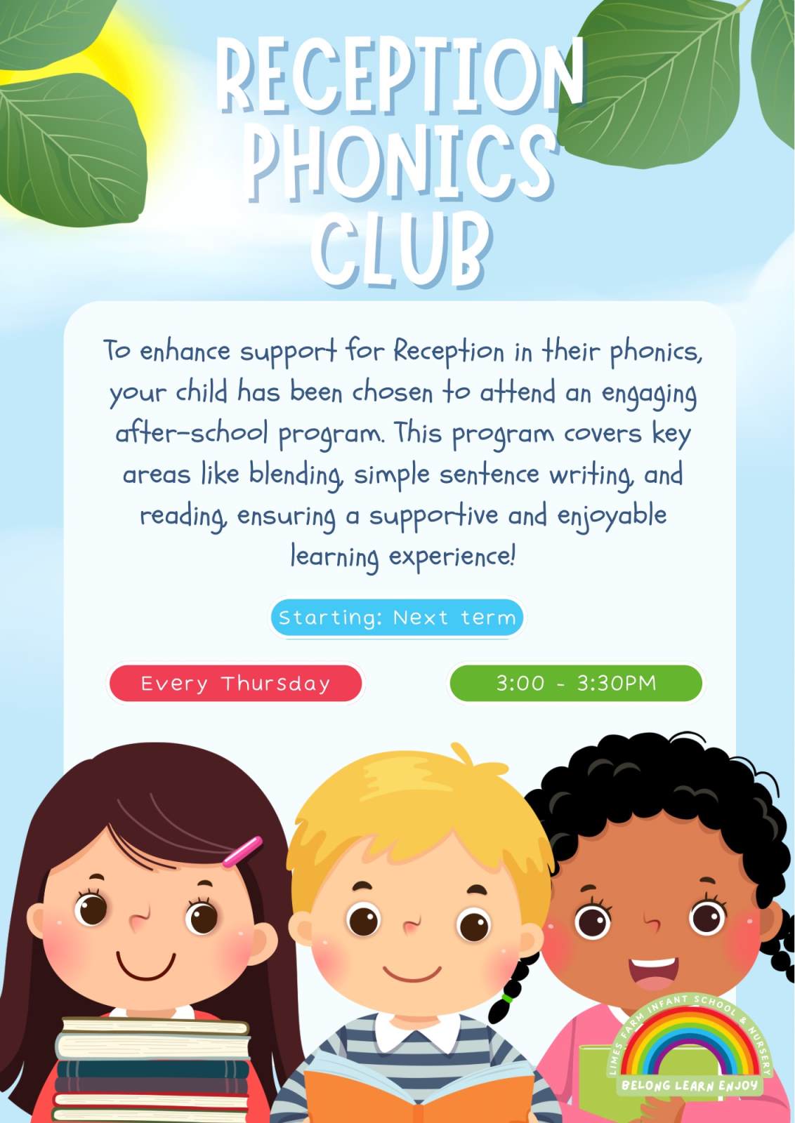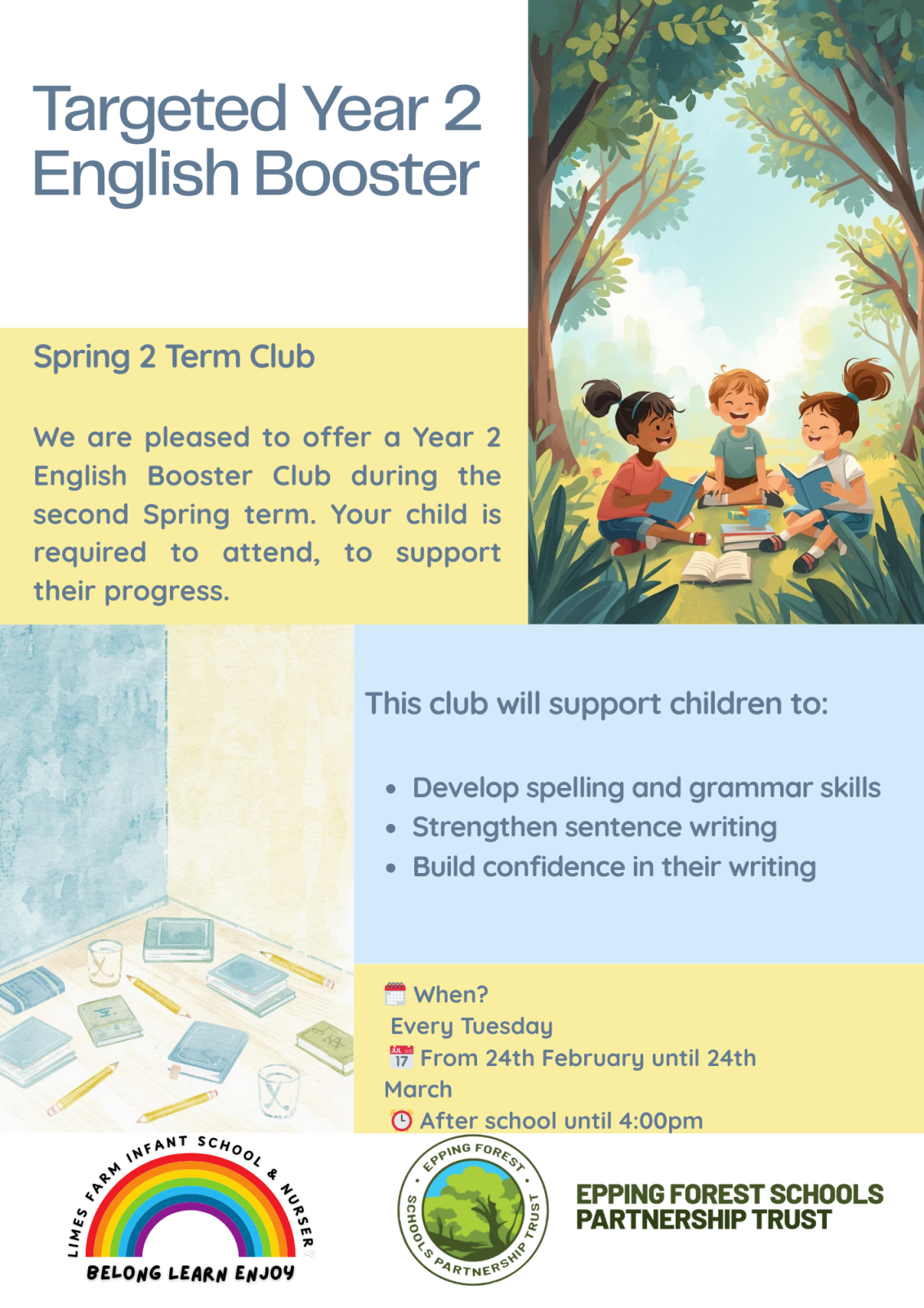 This half term we are offering a range of booster classess in Reception, Year 1 and Year 2